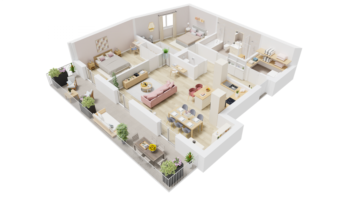 Les lots sont vendus sur plan et comportent une cuisine ouverte sur le séjour, plusieurs chambres, une à deux salle d'eau, un balcon ou une terrasse, une cave et une place de stationnement souterraine. Chaque appartement possède ses propres machines à laver et sécher dans l'appartement. Les acheteurs ont la faculté de choisir les finitions notamment pour les revêtements de sol, les cuisines et les appareils sanitaires.